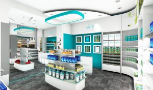 Im gesamten Laden wird nun auf energiesparende LED-Technik gesetzt. Die beleuchteten Warenträger im Hauptregal mit den 4711-Produkten sind teilweise als Sonderanfertigung mit Vitra-Retail-System umgesetzt.